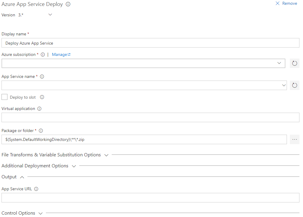 Click on the Tasks submenu and select the Deploy Azure App Service task