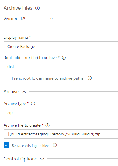 /distfolder into a zip, ready for publishing into the Release pipeline.Set Root folder (or file) to