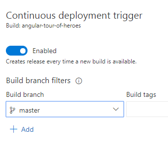 Continuous deployment trigger(Lightning icon)Set the trigger to be