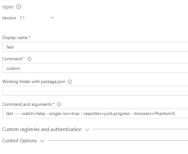 test -- --watch=false --single-run=true --reporters=junit,progress --browsers=PhantomJS -